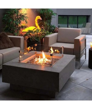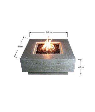 Dimensions: Dimensions, calibre et composition du brûleur : 30.5 cm de diamètre, Calibre 16 mm en acier inoxydable, Dimensions du foyer : 51.5 cm x 51.5 cm x 5 cm, Dimensions : 91 cm x 91 cm x 47 cm, Dimensions avec emballage : 98 cm x 98 cm x 47 cm
