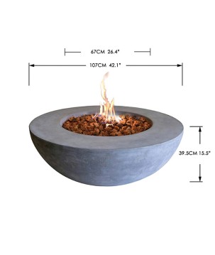 Dimensions: Dimensions, calibre et composition du brûleur : 30.5 cm de diamètre, Calibre 16 mm en acier inoxydable, Dimensions du foyer : 60.3 cm de diamètre cm, Dimensions : 106 cm x 106 cm x 40 cm, Dimensions avec emballage : 112 cm x 112 cm x 46 cm