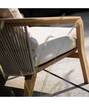 Le bois de teck cultivé et durable se combine à merveille avec des cordes naturelles pour créer une collection vraiment spéciale de mobilier d'extérieur, parfaite pour les terrasses et les patios de jardin.