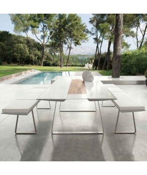 Structure en Aluminium thermo-laqué - plateaux en céramique - chemin de table en teck