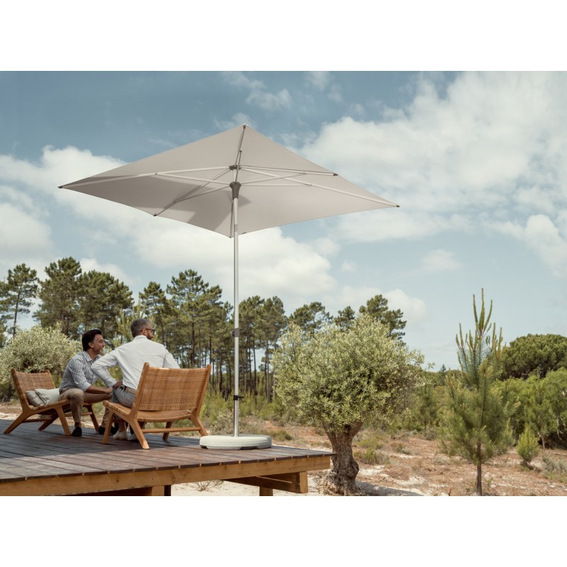 Ce parasol sur mat en aluminium anodisé est idéal pour un balcon. Petit et astucieux il s'ouvre et se ferme sans effort grâce à sa coulisse ergonomique.