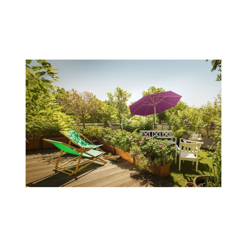 Le parasol Twist s'ouvre très facilement avec sa manivelle et la poignée rotative ergonomique permet d'ajuster l'inclinaison jusqu'à 32°.