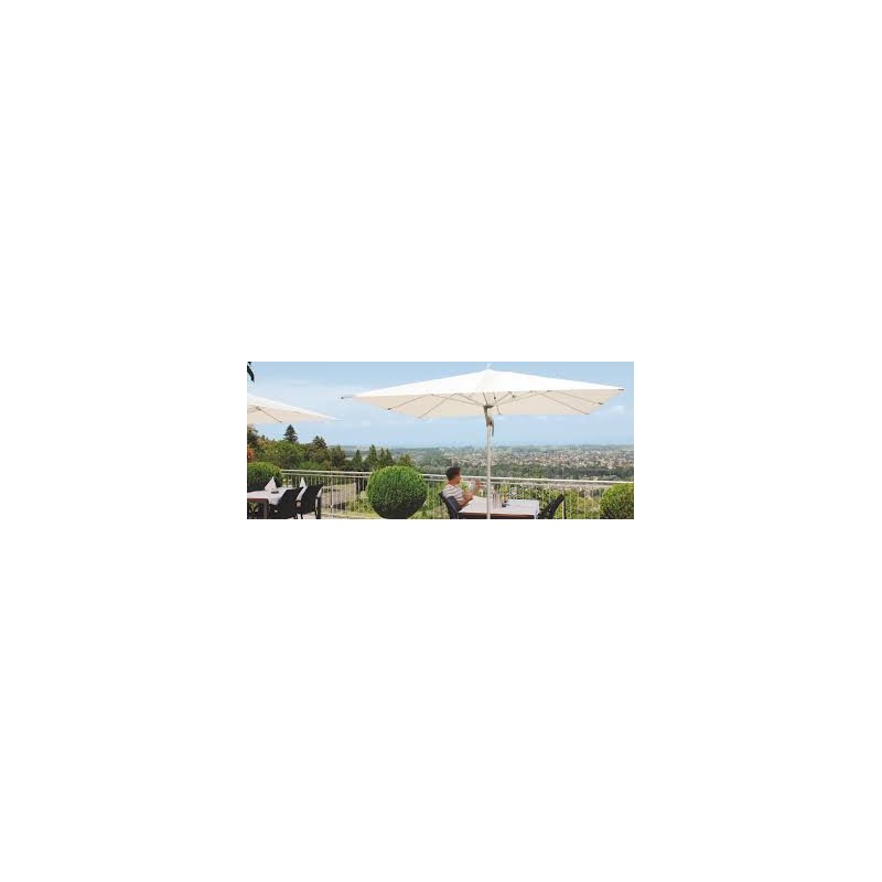 Ce parasol à mât central de taille intermédiaire est une référence auprès des restaurateurs. Résistant, durable et sûr.