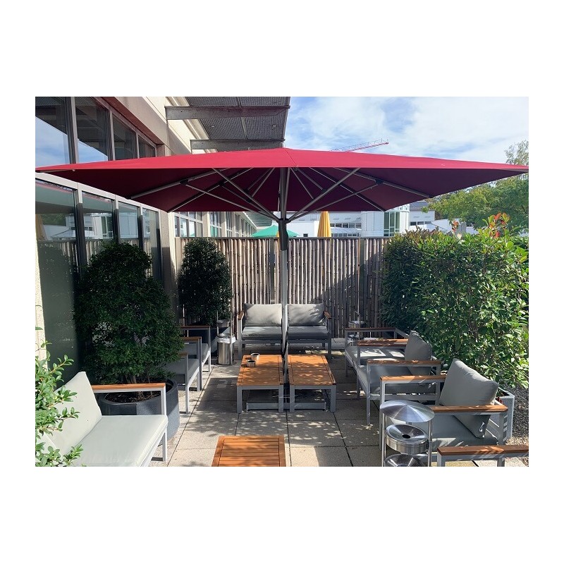 Le parasol de référence dans les endroits venteux. De plus sa hauteur de fermeture (95 cm) permet d'ouvrir ou fermer le parasol, table dressée ou non!