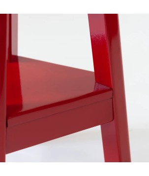 Structure en hêtre. La finition est laquée et la table possède un plateau inférieur.